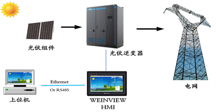 太陽能光伏并網(wǎng)逆變器是整個(gè)光伏發(fā)電系統(tǒng)中最為關(guān)鍵的設(shè)備之一,它是把太陽能電池板產(chǎn)生的直流電能轉(zhuǎn)換為交流電能的設(shè)備,運(yùn)行過程中需要多個(gè)參數(shù)進(jìn)行監(jiān)測(cè)、計(jì)算、顯示、記錄、保存、報(bào)警等處理,需要和上位計(jì)算機(jī)、逆變控制器、無線GPRS模塊進(jìn)行通訊,實(shí)現(xiàn)數(shù)據(jù)交換。本文主要講述WEINVIEW觸摸屏在太陽能光伏并網(wǎng)逆變器中的應(yīng)用。