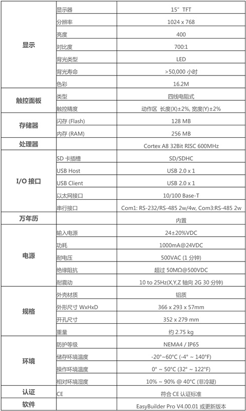 • 15" 1024x768 TFT LCD, LED 背光